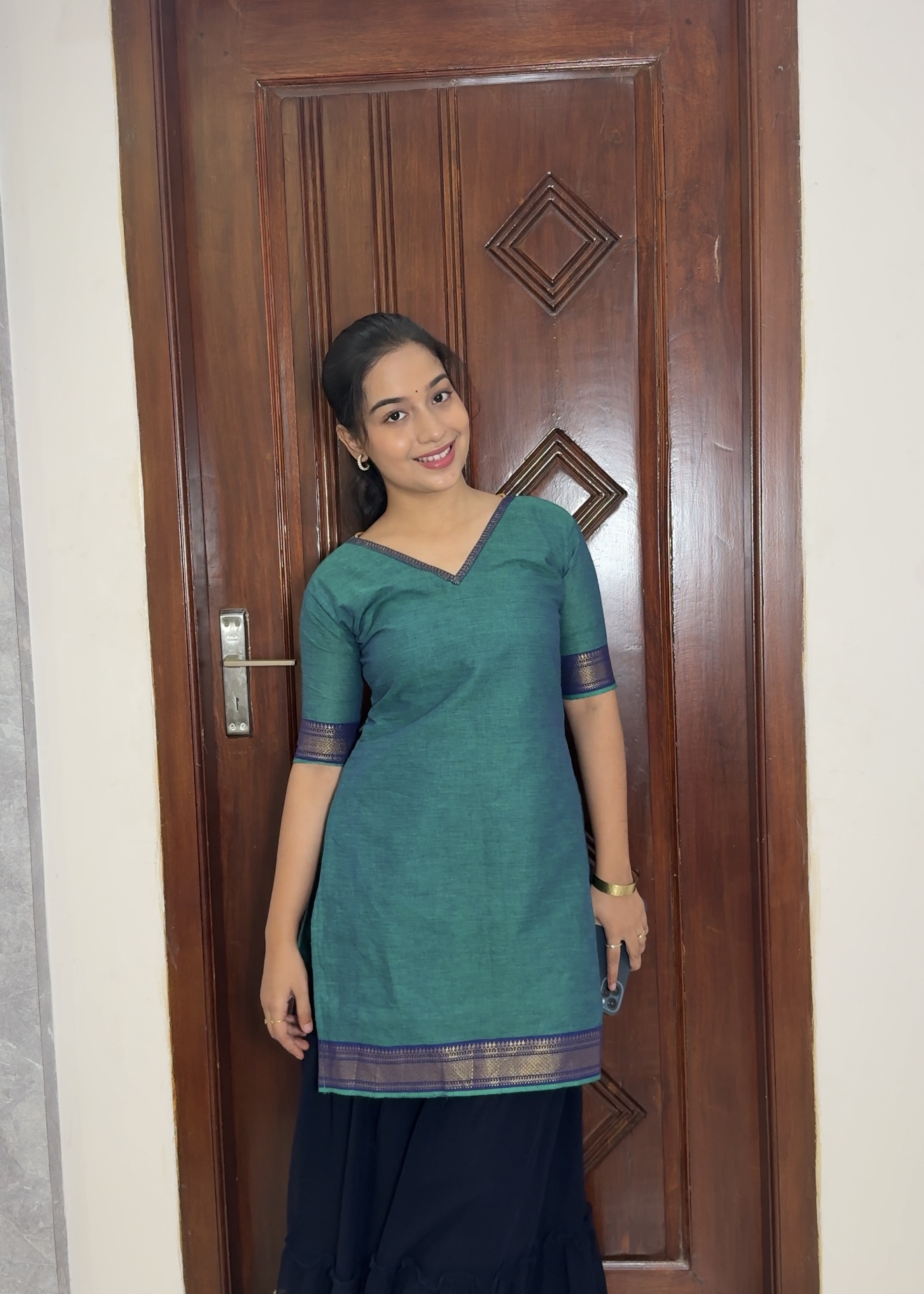 Mangalgiri short kurti – Teal blue