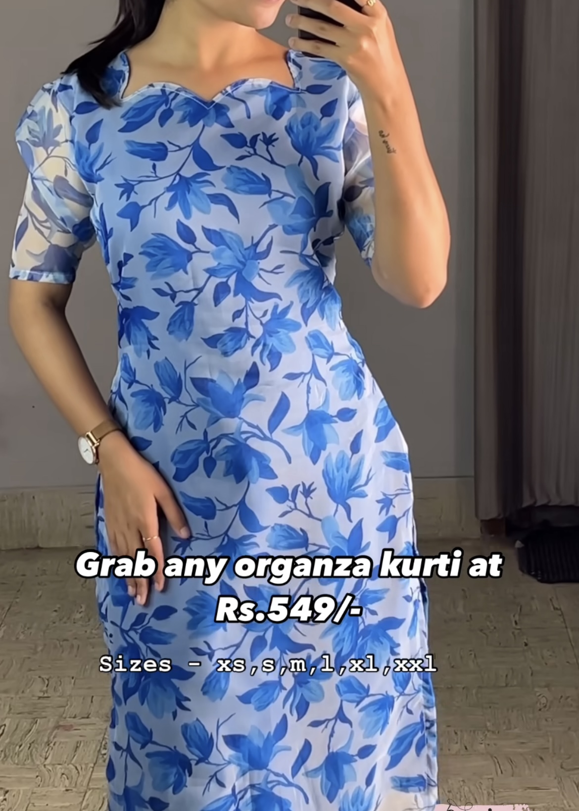 Sale! Butterfly Kurtis Stone Organza Organza Kurtis₹649.00 Original price was: ₹649.00.₹549.00Current price is: ₹549.00. Organza Kurtis 2 Choose an optiondark bluelight blueroseClear Select Size: * -- Select Size -- XS S M L XL XXL Organza Kurtis quantity Add to cart Add to Wishlist Add to Wishlist SKU: N/A Category: Kurtis Reviews (0) Reviews There are no reviews yet. Be the first to review “Organza Kurtis” Cancel replyYour email address will not be published. Required fields are marked *Your rating * Rate… Perfect Good Average Not that bad Very poor Your review *Name * Email * Save my name, email, and website in this browser for the next time I comment. Related products Out of Stock Sale! Quick View Onam Kurtis ₹699.00 Original price was: ₹699.00.₹599.00Current price is: ₹599.00. Rated 0 out of 5Read more Add to Wishlist Add to Wishlist Sale! Quick View Colour Chinon Kurtis ₹649.00 Original price was: ₹649.00.₹549.00Current price is: ₹549.00. Rated 0 out of 5Select options This product has multiple variants. The options may be chosen on the product page Add to Wishlist Add to Wishlist Sale! Quick View Floral Tissue Kurtis ₹649.00 Original price was: ₹649.00.₹549.00Current price is: ₹549.00. Rated 0 out of 5Select options This product has multiple variants. The options may be chosen on the product page Add to Wishlist Add to Wishlist Sale! Quick View Pure Cotton Kurtis ₹649.00 Original price was: ₹649.00.₹549.00Current price is: ₹549.00. Rated 0 out of 5Select options This product has multiple variants. The options may be chosen on the product page Add to Wishlist Add to Wishlist